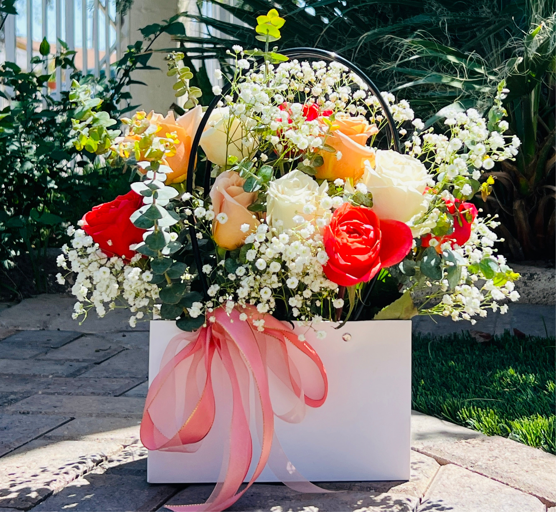 - 3 color roses ( salmon, pink, red or white)